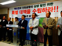 인천시 옹진군 북도면 주민들이 인천공항 부근 소음 대책마련을 촉구하며 나섰다.북도면총연합회는 국토부, 인천공항공사, 인천시, 안상수 국회의원에 특별대책수립을 촉구하는 기자회견을 26일 인천시청에서 가졌다.차광윤 북도면연합회 수석부회장은 "인천공항은 많은 항공사 유치를