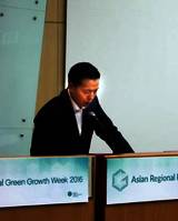 한화큐셀 김동관 영업실장이 '세계 녹색 성장 회의'에서 기조연설을 했다. 8일 한화큐셀은 김 실장이 지난 7일 오후 제주도 국제컨벤션센터에서 진행된 '세계 녹색 성장 회의'에서 기조연설을 했다고 밝혔다. 김 실장은 에너지 저장장치 기술 혁신을 주제로 10분간 연설했다.