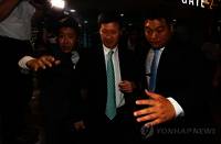 경호원들 둘러싸여 기자들 질문 답변 않아