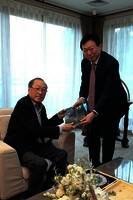 신동빈 회장, 前 쌍용 김석원 회장에 스키산업 '공로패' 전달
