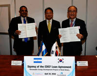한국수출입은행은 11일 니카라과 정부가 추진하는 '지방 태양광에너지 공급사업'에 대외경제협력기금(EDCF) 3300만달러를 지원하기로 했다. 이덕훈 수출입은행장은 이날 유일호 경제부총리 등이 지켜보는 가운데 이반 아꼬스따 몬딸반 니카라과 재무장관과 이같은 내용