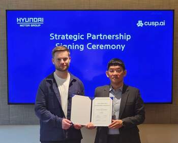 현대차그룹이 영국 인공지능(AI) 스타트업 커스프AI와 차세대 소재 개발에 나선다.현대차그룹은 지난 6일(현지시간) 영국 케임브리지의 커스프AI 본사에서 소재 AI 협력을 위한 전략적 파트너십을 체결했다고 7일 밝혔다.커스프AI는 첨단 생성형 AI, 딥러닝, 분자 시뮬