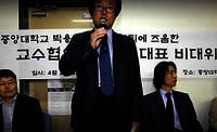 "막말·여론 조작 박용성 사퇴"중앙대 교협·비대위 "막말·여론 조작 박용성은 법적 책임 져라"