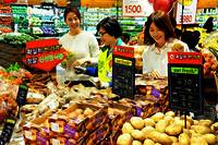 12일 서울 홈플러스 금천점에서 모델과 '신선지킴이' 직원들이 신선식품을 선보이고 있다. 홈플러스는 이날부터 소비자가 가장 많이 찾는 500개 신선식품에 대해 연중 상시 10~30% 가격을 인하키로 했다. 이와 함께 1등급 이상 삼겹살 도입, 주요 과