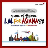 아시아나항공(대표 김수천)이 이달 22일까지 국내 거주 외국인 유학생 등으로 구성된 '2015 글로벌 마케터(I.M. For Asiana)'를 모집한다.9일 아시아나항공에 따르면 이번 글로벌 마케터 모집은 국내 거주 외국인 유학생 및 한국 국적의 대학생이라면 누구나 참
