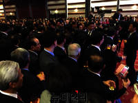 대한상공회의소가 5일 서울 삼성동 코엑스에서 주최한 '2015년 경제계 신년인사회'에서 작은 소란이 일었다. 김기문 중소기업중앙회 회장의 건배 제의를 끝으로 공식 행사가 마무리 될 무렵, 검은색 치마 정장 차림의 단발머리 여성이