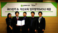 kt렌탈의 카셰어링 서비스 그린카는 진로교육 전문기업인 지산교육과 업무협약(MOU)을 맺고 재능 나눔 활동에 필요한 차량을 무상으로 지원한다고 12일 밝혔다. 앞서 그린카와 지산교육은 지난 11일 서울 대치동 그린카 본사에서 김상철 그린카 마