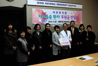 서울대학교병원은 지난 11월 26일 서울 압구정동 아란유치원 학부모들로부터 21,610,850원의 저소득층 환자 후원금을 전달 받았다고 2일 밝혔다. 아란유치원은 지난 1995년부터 올해까지 20년 동안 매년 저소득층 환자돕기 바자회를 열고 수익금