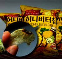 애벌레 이물질 논란 해프닝대박 행진 중인 해태제과의 '허니버터칩'에 애벌레가 나왔다는 글이 트위터에 올라왔다 삭제된 해프닝이 있어 눈길을 끌고있다. 현재 해당 글은 삭제된 상태고 해태제과 측은 "사실이 절대 아니다"라고 극구 부인하고 있다.최근 한 트위터에는 "허니버터칩이 인기가 많아서 공장