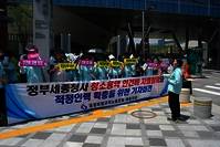 정부세종청사에 '쓰레기 대란'이 올 가능성이 커지고 있다.공공비정규직노동조합 충남세종지부(비정규직 노조)는 10일 정부세종청사 국무조정실 후문 앞 인도에서 청소용역 인건비 차별철폐 및 적정인력 확충을 위한 결의대회를 열고 정부에 책임 있는 태도를 촉구했다.이들은 안전행