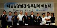 한국석유관리원(이사장 김동원)이 10일 오전 본사(성남시 분당구) 대회의실에서 성남시사회복지협의회(부회장 노만호)와 ‘나눔경영 실천’을 위한 업무협약(MOU)를 체결했다고 11일 밝혔다. 석유관리원은 공공기관으로써 지역사회 발전을 위한 다양한 상생활동을 적극