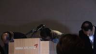 "이번 추락사고의 정확한 원인은미국 교통안전위원회(NTSB) 결과가 나와야 확인할 수 있다.피해를 입은 탑승객 가족과국민들께 심려를 끼쳐 드려 송구스럽다." - 아시아나항공 윤영두 사장(사진 중앙) <아시아나항공>이 고개를 숙였다.