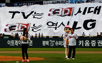 LG전자가 지난 11일 잠실야구장에서 열린 삼성과의 경기에서 지난해에 이어 다시 한 번 초대형 이색 응원전을 펼쳤다.이날 경기장에는 LG전자 한국마케팅본부 1,200여명의 임직원들이 ‘시스템에어컨 전모델 에너지 1등급 LG 휘센 뿐!’·‘TV는 3D시대, 3D는 역시