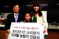 KT는 19일 장애인의 날을 맞아 광화문 올레스퀘어에서 연예인 스마트폰 경매행사 수익금으로 디지털보청기를 기부하는 행사를 가졌다고 밝혔다.아울러 올해로 10년을 맞는 청각장애아동을 위한 ‘소리 찾기’ 사업의 10번째 수혜자 모집을 시작한다.이번 디지털보청기 기부는 이세