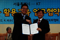 KT는 4일 서울 관악구 봉천동 한국장애인정보화협회에서 서울시와 ‘정보소외계층의 스마트 기술 활용교육 협력을 위한 업무협약(MOU)’을 맺었다고 밝혔다. MOU를 통해 KT와 서울시는 4월부터 노년층, 장애인, 결혼 이민자 등 정보소외계층을 대상으로 무료 교육을 실시한
