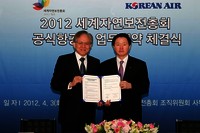 대한항공이 2012 세계자연보전총회(WCC, World Conservation Congress) 공식 항공사로 나섰다.대한항공은 3일 서울시 종로구 소재 WCC 조직위원회 사무실에서 ‘2012 세계자연보전총회’ 공식 항공사로 업무협약(MOU)을 체결했다.이에 따라 대한