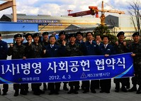 현대중공업이 국토방위에 힘쓰고 있는 장병들의 사기를 높이기 위해 발 벗고 나섰다.현대중공업은 3일 울산 본사에서 육군 제53사단과 ‘1社 1병영운동 양해각서’를 체결했다고 밝혔다.이번 협약에 따라 현대중공업은 정기적으로 53사단을 방문해 장병들의 사기를 높이고 장병들의