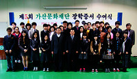 광동제약 가산문화재단은 30일 평택시 소재 송탄공장에서 중고등학생 63명을 대상으로 장학증서를 수여했다.가산문화재단은 지난 2007년 최수부 회장의 아호인 ‘가산’이라는 이름으로 설립된 이후 장학사업 등의 공익활동에 전념하고 있다. 올해까지 204명의 중고등학생들에게