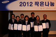 삼성전자와 삼성복지재단이 지난 27일 서울 한남동 삼성아동교육문화센터에서 사회복지 프로그램 개발지원사업인 '작은나눔 큰사랑' 지원금 전달식을 가졌다.'작은나눔 큰사랑'은 시설지원이나 물품후원을 넘어 사회복지서비스의 소프트웨어라 할 수 있는 우수 사회복지 프로그램을 발굴