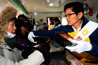 김문수 경기도지사가 소값 폭락으로 시름에 빠진 농축산민들을 찾았다. 김 지사는 18일 설 명절을 앞두고 과천경마공원 내 개장한 임시 직거래장터인 ‘바로마켓’을 방문해 한우고기를 판매했다. 김 지사는 바로마켓 내 80여개 부스를 돌며 직거래 농민을 격려하고 부스를 찾은