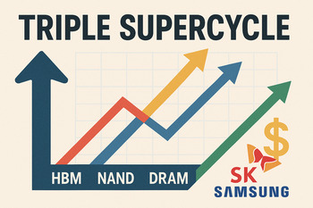 내년 글로벌 메모리 시장에서 고대역폭메모리(HBM)·낸드플래시·D램 수요가 동시에 급증하는 ‘트리플 슈퍼사이클’이 본격화될 것이란 전망이 커지고 있다. 인공지능(AI) 데이터센터 구축과 글로벌 IT기업의 일반 서버 투자 재개가 맞물리며 메모리 공급이 빠르게 늘지 않을