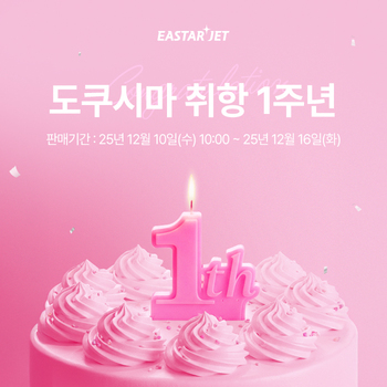 ◆이스타항공, 日 도쿠시마 취항 1년간 4만5000명 수송이스타항공 인천~도쿠시마 노선 취항 1주년을 앞두고 특가 프로모션을 진행한다고 9일 밝혔다.작년 12월 26일 첫 운항을 시작한 도쿠시마 노선은 현재까지 총 300편을 운항하며 누적 탑승객 약 4만5000명, 평