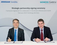 두산에너빌리티가 지멘스가메사(이하 SGRE)와 손잡고 해상풍력 사업 경쟁력을 강화한다.두산에너빌리티는 글로벌 해상풍력 1위인 지멘스가메사(SGRE)와 독일 함부르크에서 국내 해상풍력시장에서의 전략적 협력을 위한 기본 합의서를 체결했다고 7일 밝혔다.이번 합의서를 통해