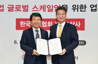한국무역협회와 LG상사는 3일 삼성동 코엑스에서 '종합상사 연계형 스타트업 글로벌 스케일업(Scale-up)을 위한 업무협약(MOU)'을 체결하고 스타트업 해외 테스트베드 사업을 본격 추진하겠다고 밝혔다.이날 협약식은 한진현 무역협회 부회장과 윤춘성 LG상사 대표 등