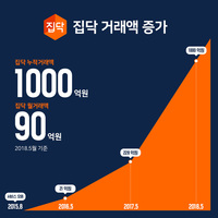 인테리어 비교견적 중개 O2O(온·오프라인 연계) 전문기업 집닥은 5월말 기준 누적 거래액 1000억원을 달성했다고 4일 밝혔다. 이는 전년동기 대비 439% 증가한 수치로, 지난 2015년 8월 정식으로 서비스를 시작한 지 2년9개월여만에 이룬 성과다. 월