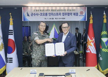 코오롱인더스트리는 지난 28일 대전 유성구에 위치한 육군군수사령부에서 ‘군 불용물자 자원순환 시범사업을 위한 업무협약’을 체결했다고 29일 밝혔다.이날 협약식에는 허성 코오롱인더스트리 대표, 손대권 육군군수사령부 사령관 등 양측 주요 관계자가 참석했다.이번 협약은 군