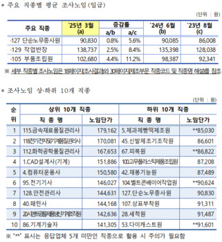 중소기업중앙회는 지난 27일 매출액 30억원·상시근로자 10인 이상 중소제조업 1500개사 대상으로 실시한 ‘2025년 상반기 중소제조업 직종별 임금조사’ 결과를 발표했다고 29일 밝혔다.3월 기준 올 상반기 중소제조업 129개 직종별 생산직 근로자의 평균 일급은 11