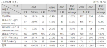 3월 수입 상용차 380대 등록 … 벤츠, 두드러진 성장세
