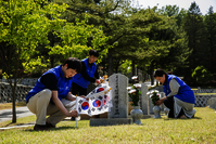 효성그룹은 6월 '호국보훈의 달'을 앞두고 임직원 20여명이 지난 24일 오후 서울 동작구에 위치한 국립서울현충원을 방문해 현충탑 참배를 하고 태극기 교체, 헌화, 묘비 닦기 등 정화 활동을 진행했다고 25일 밝혔다. 효성과 자매결연 협약된 9묘역은 전사 또는