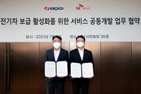 SK에너지와 한국전력공사가 국내 전기자동차 보급 활성화를 위해 손을 맞잡았다.5일 SK이노베이션에 따르면 양사는 국내 전기차 보급 활성화를 위한 서비스 공동개발에 대한 업무협약을 체결했다.한국전력은 국내 최대 전기차 충전 인프라 사업자로, 국내 최대 충전사업자간 로밍