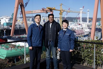 HD현대는 8일 라자 타밀나두 주 산업부 장관과 다가(Gaurav Daga) 타밀나두 투자청 상무 등 관계자 5명이 HD현대중공업 울산 조선소를 방문했다고 밝혔다.앞서 HD현대는 지난해 12월 인도 현지에서 타밀나두 주 정부와 ‘신규 조선소 건설에 관한 배타적 업무협약