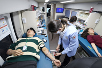 HD현대가 판교 글로벌R&D센터(이하 GRC)에서 헌혈 캠페인을 진행했다고 7일 밝혔다.GRC 앞 정차된 혈액원 헌혈버스에서 진행된 캠페인에는 사전 신청한 인원과 현장에서 참여한 인원을 더해 약 300여명의 임직원이 자발적으로 동참했다. 헌혈 임직원들을