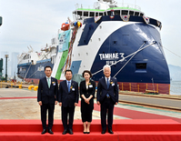 HJ중공업, '3D·4D 물리탐사연구선' 진수… "국가 해저자원 탐사 새 지평 열었다"