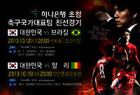 한국축구국가대표팀 공식후원은행인 <하나은행>(은행장 김종준)은 12일 오후 8시 서울월드컵경기장에서 개최되는 <하나은행 초청 축구국가대표팀 친선경기 한국 대 브라질> 경기의 타이틀스폰서로 참여한다고 밝혔다. 이미 티켓 전쟁이