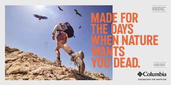 자연을 마냥 아름답고 평화로운 공간으로 묘사하는 아웃도어 브랜드 광고의 통념을 깬 컬럼비아 스포츠웨어(Columbia Sportswear) 광고가 공개됐다. 계속해서 이어지는 예상 밖의 자연 재해부터 통제 불가능한 날씨, 위협적인 야생 동물과의 만남, 심지어는 생존의