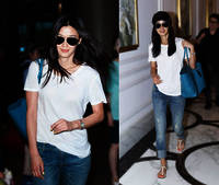 배우 전지현이 편안하면서도 감각 있는 공항패션을 선보였다.전지현은 지난 26일 대만에서 열린 구찌 2014-2015 FW컬렉션 패션쇼 참석 후 입국한 모습이 포착됐다.전지현은 구찌 비아찌오 라인의 저지 화이트 티셔츠와 프리-폴 컬렉션의 라이트 블루 데님으로 내추럴 시크