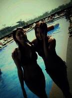 한그루와 김소리의 비키니 사진이 다시 화제를 모으고 있다.최근 한 온라인커뮤니티 게시판에는 '한그루 김소리 비키니'라는 제목으로 한 장의 사진이 올라왔다.공개된 사진은 한그루가 지난해 5월 자신의 트위터에 "소리 그루 수상스키후 지쳐가용"이라는 글과 함께 게재한 것이다