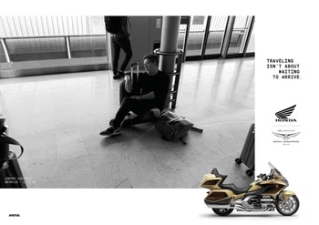 공항에서 졸다가 사진 찍혔는데, 혼다 오토바이 광고 모델 된 사연?