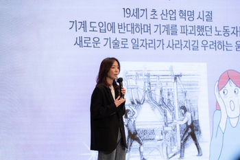 "인공지능(AI), 피하겠습니까 혹은 맞서겠습니까? 저는 기꺼이 올라타라고 조언하겠습니다. 먼저 올라타는 사람이 가장 멀리 달릴테니까요." 박윤진 서울라이터 CD가 광고 업계 AI 활용 현황과 시행착오를 공유하며 누구나 AI 크리에이티브 디렉터가 될 수 있다는