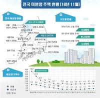 지어진 후에도 팔리지 않아 '악성 미분양'으로 불리는 준공후 미분양 주택이 2013년 이후 5년 만에 최대치를 기록하며 우려를 낳고 있다.27일 국토교통부에 따르면 11월말 기준 전국 미분양 주택은 전월(6만502가구) 대비 0.6%(380가