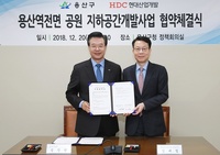 HDC현대산업개발은 전날 용산구와 '용산역전면 공원 지하공간 개발사업'의 사업협약을 체결했다고 21일 밝혔다.이 사업은 용산역 전면 한강로2가 365번지 일대 4000여평의 공원조성 예정부지에 지하공간을 개발하고 운영하는 BTO(Build-Transfer-Operate