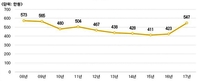 아파트 매매가격의 절반가량을 주택담보대출 받았을 때 발생하는 이자비용이 2009년 이후 최대치를 기록한 것으로 나타났다. ㈜직방에 따르면 2017년 기준 전국 아파트 구입 시 평균 이자비용은 연 547만원으로, 2016년 423만원에 비해 29.3% 상승한 것으로 조사