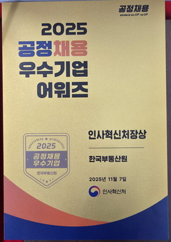 한국부동산원은 고용노동부가 주관하는 '2025년 공정채용 우수기업 어워즈'에서 인사혁신처장상을 수상했다고 12일 밝혔다.이상은 공정한 채용문화 확산을 위해 노력한 공공기관 및 민간기업에 수여된다.한국부동산원은 1969년 설립후 채용시기를 정례화해 예측가능성을 높였고 채
