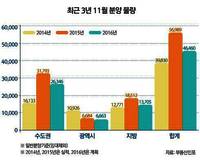 부동산시장 과열 논란과 정부의 추가 규제 시그널이 계속되는 가운데 11월 전국에서 4만6460가구가 공급될 예정이다. 특히 최근 수개월 간 청약열기가 치열했던 서울·부산 등지에서 4000~5600여가구가 분양을 앞두고 있어 이들 지역 분양열기가 계속될지도 주목되고 있다