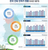 코로나19(우한폐렴) 변이인 오미크론 확산으로 건축 인허가 면적은 전국적으로 늘었지만 착공·준공은 모두 감소한 것으로 조사됐다. 국토교통부는 3일 '1분기 전국 건축 인허가 현황'을 집계한 결과 인허가 면적은 전년동기 대비 14.0% 증가한 반면 착공은 15.8%, 준