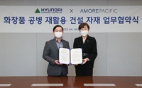 현대건설이 아모레퍼시픽과 손잡고 화장품 용기를 재활용한 공동주택 조경시설물을 선보인다.현대건설은 전날 서울 종로구 계동 현대건설 본사에서 아모레퍼시픽과 업무협약(MOU)을 체결했다고 15일 밝혔다.양사는 화장품용기 재활용 소재를 사용한 건설자재와 디자인개발에 협력할 계